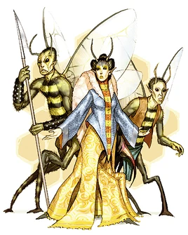 Abeils (sometimes pluralized as "abeil"[2]), also commonly known as bee people, were humanoid bee-like creatures that lived in large hive-cities. They were divided into three castes: the laboring vassals, the fighting soldiers (also known as stormwings), and the ruling queens.[1]