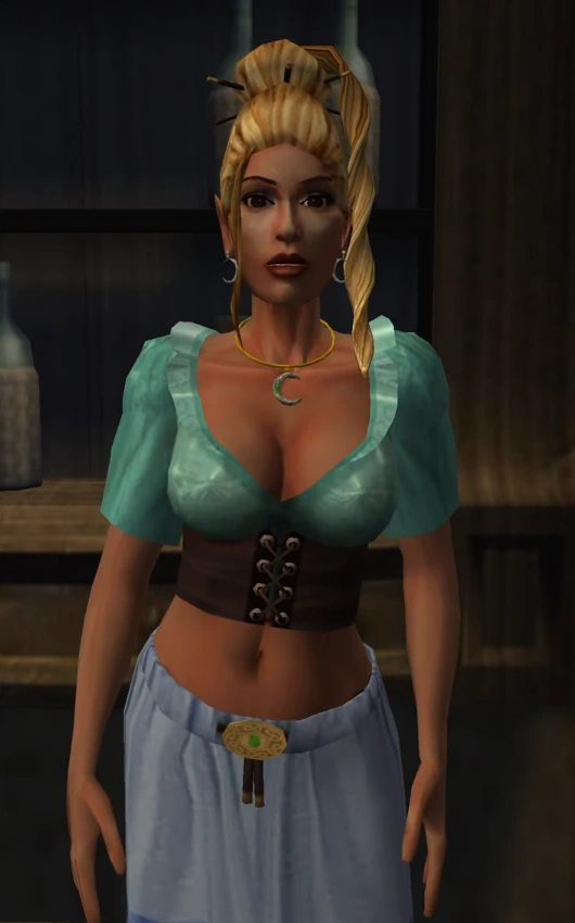 As of 1366 DR - 1368 DR,[3] the female half-elf owned this well known tavern in Baldur's Gate. She bought the establishment for 50,000 gp from its previous owner, an aged warrior.[1]