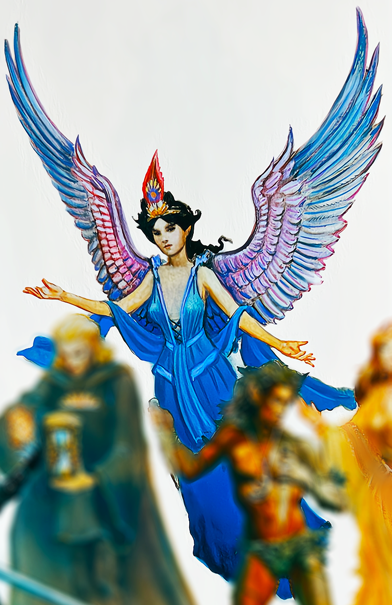 The avariel (aril-tel-quessir, or "winged folk", in Elven) were among the first of the elf races to migrate to Faerûn.[5] However, conflict with dragons almost wiped them out before the First Flowering and while they survived since that time, they were considered by most to be myths or legends.[6][1]