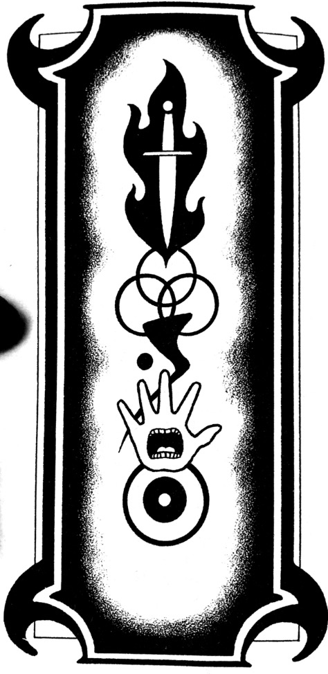 The magical brand caused Alias to flee until she found herself all the way back at the Hidden Lady. Akabar retrieved the sage's research and the group headed back to Suzail in search of missing Alias. They easily found her in the familiar inn, sitting at the back of the main hall, quietly singing to herself a song about the Tears of Selune and crying. Even though she asked Olive, Akabar, and Dragonbait to leave her and forget about her, the group refused, promising to aid her in the quest. The wizard relayed Alias the sage's research. The sigils on her hand stood for: the image of the dagger - an assassins guild called Fire Knives that operated out of Westgate; three intertwined circles likely belonged to a long-dead wizard Zrie Prakis; the insect squiggle belonged to an infamous wizard Cassana who was tied to Zrie before his death; the palm with a maw in its middle was a symbol of an ancient god Moander whose temple has been raized in Yulash ages ago, and the last symbol of concentric circles was unknown to Dimswart, possibly belonged to a new power in the realms. Alias was adamant about heading to Yulash as their first destination, ignoring Olive's suggestion to head to Westgate and Akabar's lead in Shadowdale.[11]