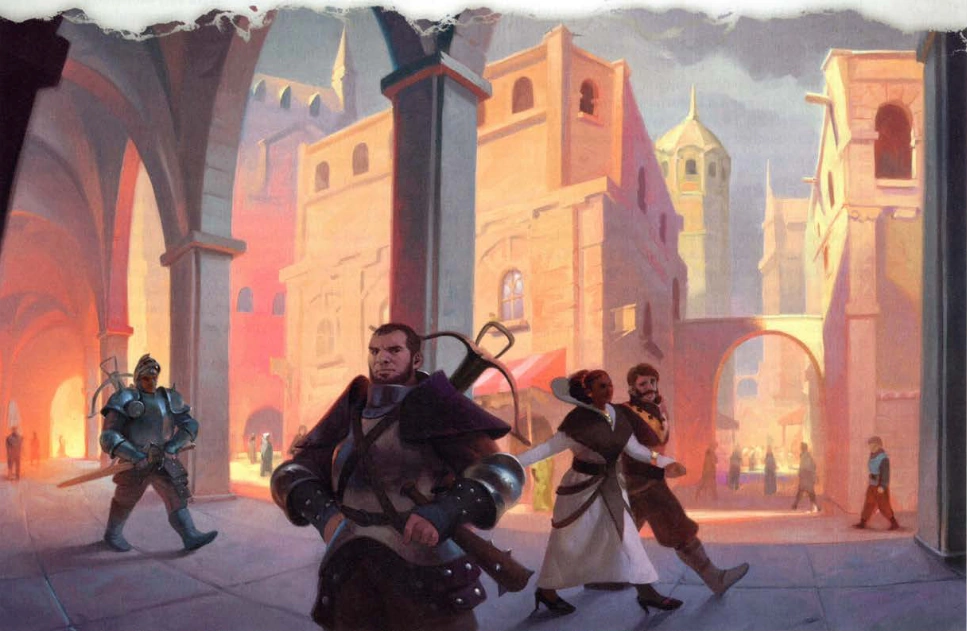 While the grand buildings and estate-houses of the Upper City were bustling with behind-the-scenes activity of personal retainers, lines of servants and skilled artisans, the streets outside were well-ordered and at times even serene. The regular hustle-and-bustle of city life was most strongly felt in the vast marketplace known as the Wide.[4]