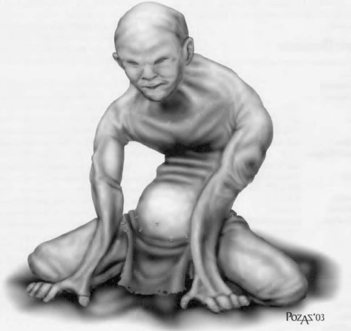 Some boneless were capable of assuming a lanky humanoid form. Such forms had long withered limbs, necks that were like flexible cords, and shrunken wrinkled heads, and fetid skin that was of a translucent reddish-brown hue. They were occasionally seen in loose-fitting rags, though these were often stitched directly onto their skin by their master. Such boneless generally moved with a lurching uncertainty, occasionally dropping to all fours for an animalistic sprint.[2][3]