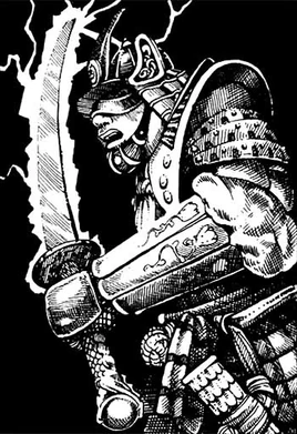 The katana could only be handled by individuals of chaotic nature, and it regularly shocked anyone else who even touched it. To chaotic beings, the sword granted immunity to all forms of lightning, natural and magical, and protected them and their belongings from wetness due to adverse weather such as fog, rain, and storms, but not being submerged in water.[1][2]