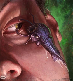 An Illithid tadpole preparing to enter a human.