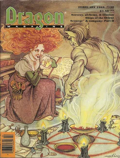 Dragon issue 130, Sorcery, alchemy and illusion, was released in February of 1988. It contained the following articles related to the Forgotten Realms: