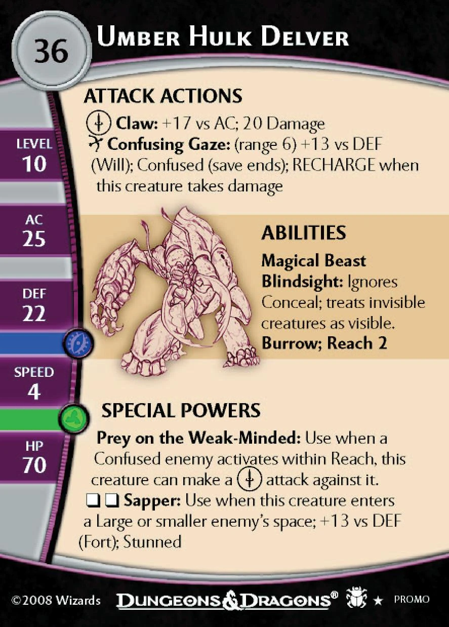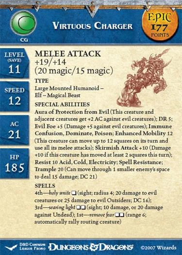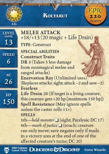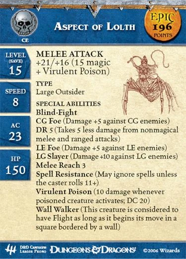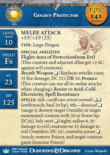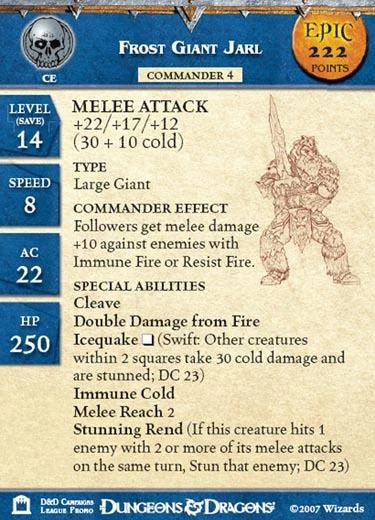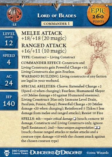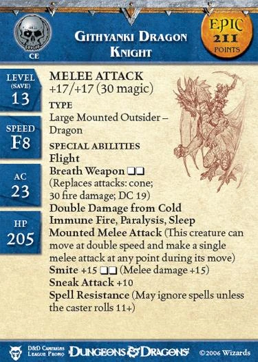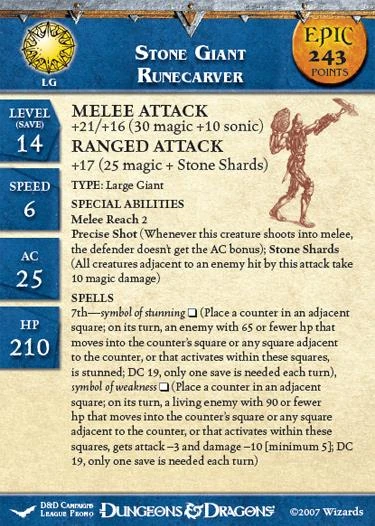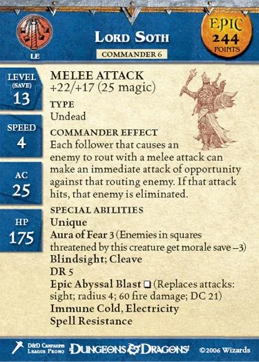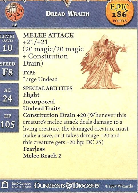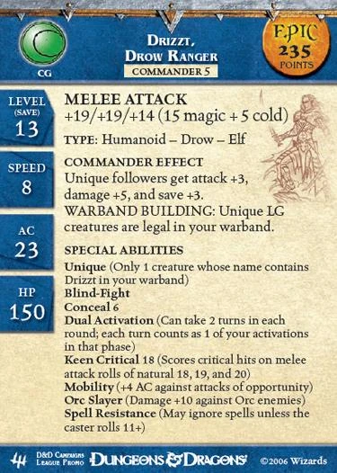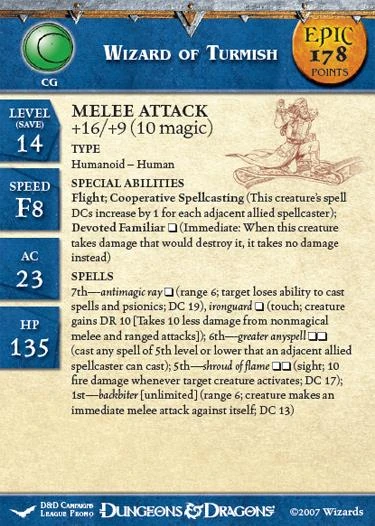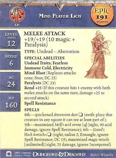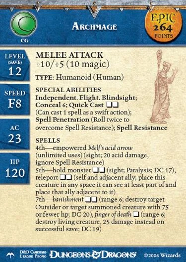- ↑ 1.0 1.1 Epic Stat Cards (HTML). D&D Miniatures Tournaments. Wizards of the Coast. Archived from the original on 2011-06-23. Retrieved on 2020-03-03.