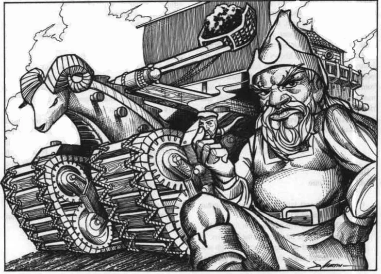 When cast, this spell brought into being a large mechanical construct. It was illusory but very noisy and had an imposing and massive build and many arms. It had a hard, armored casing but was not especially resilient. It trundled along the ground at a pace one-third faster than a human. It was capable of swimming or flying, but did so slowly and clumsily.