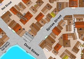 Fine Nuts was located in the southeast section of the Dock Ward on Spices Street just to the west of where it was intersected by Wharf Street.[1][2][3][4]