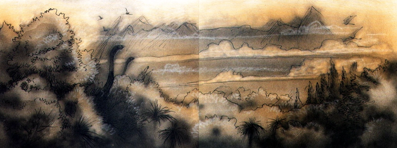 The jungle of the plateau and its lake were full of a large population of dinosaurs of all varieties.[3][4] The roars and screeches of these terrible lizards could be heard in all the jungle surrounding the plateau.[3] Other animals and insects also lived there, and the whole place was a self-contained and self-sufficient ecosystem.[3]