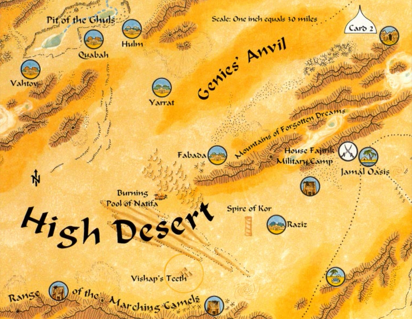 - ↑ Cards included in Rick Swan (1994). “Card 2:High Desert”. In C. Terry, Dezra D. Phillips eds. Caravans (TSR, Inc). ISBN 1-56076-903-3.