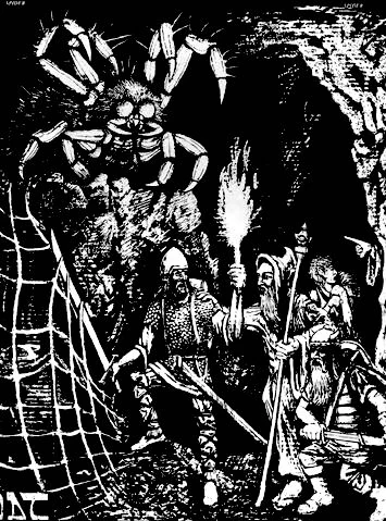 Giant spiders could attack in a variety of ways, typically whatever way their normal counterparts could. Some spun huge webs that prey easily stumbled into, while others spat a deadly poison. Some were capable of walking on ceilings, while others were not. Despite the differences between the types of giant spiders, all were formidable opponents and certainly not foes for any arachnophobes to face.[6]