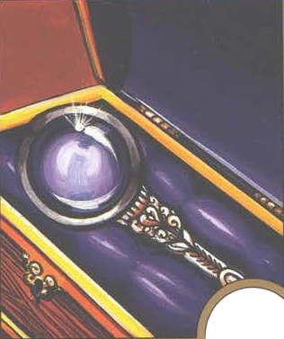 These magnifying glasses had ivory handles and a band made of silver around their lens.[1][2]