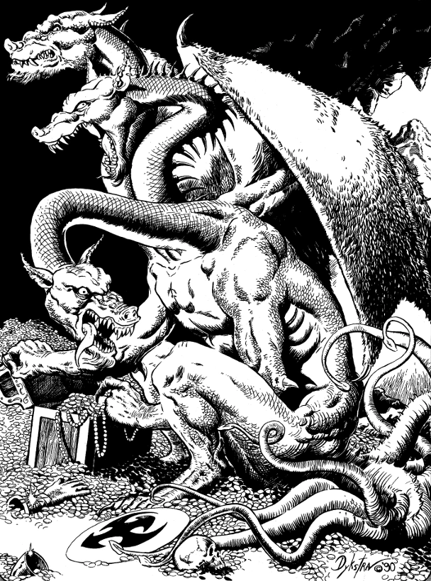 - ↑ 2.00 2.01 2.02 2.03 2.04 2.05 2.06 2.07 2.08 2.09 2.10 Spike Y. Jones, Steve Fetsch (June 1990). “The Dragon's Bestiary: Two almost-but-not-quite dragons”. In Roger E. Moore ed. Dragon #158 (TSR, Inc.), pp. 20–22.