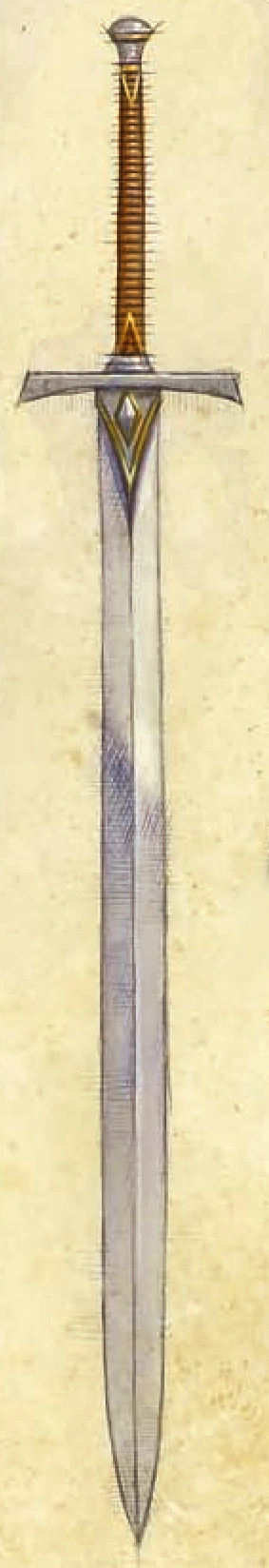 Due to their size and weight greatswords required a good deal of training in order to wield effectively. Thus, they were classified as a martial weapon. Greatswords with parrying hooks could be gripped with one hand between the hooks and the guard, and the other on the hilt, allowing the weapon to be used in a pole arm fashion. The greatsword was generally recognized by adventurers as a reliable, powerful weapon.[5]