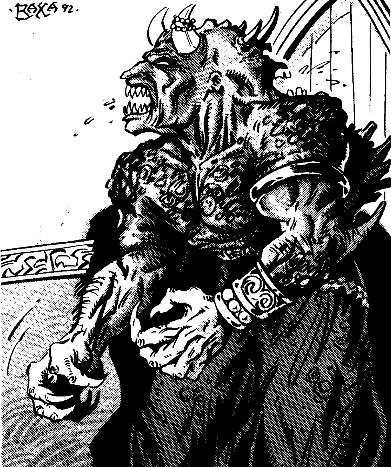 - ↑ The alignment given in the source is simply "Lawful". It is unclear if this means only lawful neutral, which would fit the societal description, or also lawful good and lawful evil.