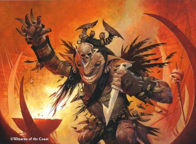 High Priestess Gut wielded a magical goblin warboard in combat and wore a talisman of the Absolute.[1]