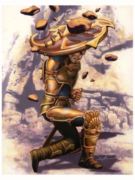 Hail of stone was a simple conjuration spell that created a brief hailstorm of rocks to fall upon an opponent. It was common among spellcasters living in the Underdark[3] and among the wu jen of Kara-Tur[6]—particularly those specializing in the power of elemental earth.[1][6] In some worlds, shamans maintaining a relationship with a stone spirit also utilized this spell.[8]