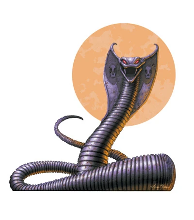 Iron cobras were a type of serpentine construct.[5] They were favored by the Scaled Ones for their snakelike form.[6]