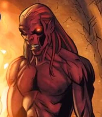 Kempana was a huge, scarlet-skinned goblin-like creature. When excited, his eyes would glow orange.[2]