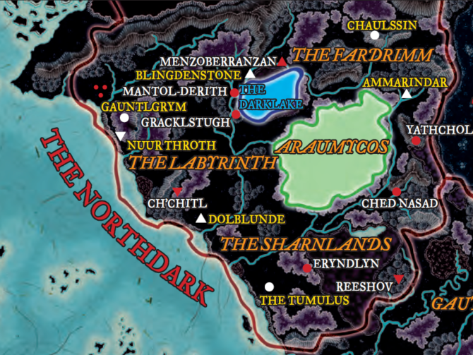 The Labyrinth was located some 100 miles south and west of the Darklake and Gracklstugh.[3]