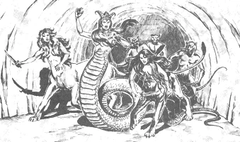 Ereshkigal, Queen of Tortures, leading a band of wererats and lamias.