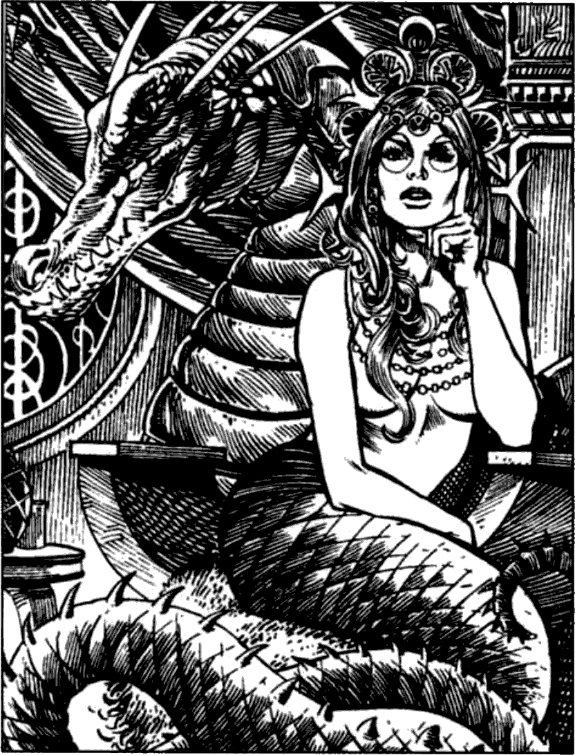 Lamia nobles collected vast treasures, with a focus on gems, historical lore, and magical items, such scrolls, rings, or jewelry. Most of these collections were "gifts" from their charmed "admirers" or visiting scholars whom they later ate.[1] While they collected jewelry, they were not known to ever wear clothing or jewelry on their bodies.[2]
