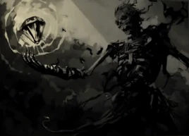 When the monstrous horde overran the Hand of the Seldarine, Larrel and his fellow mages attempted to raise a mythal over the imperiled elven fortress. The ritual did not go as planned however. Larrel and the others inadvertently cursed everyone inside the Hand—elves and invaders alike—with the eternal undeath. For his hubris, Larrel was cursed by the god Labelas Enoreth as a baelnorn. He was afflicted with a form of madness that left him babbling incoherently, incapable of communicating with others.[1]