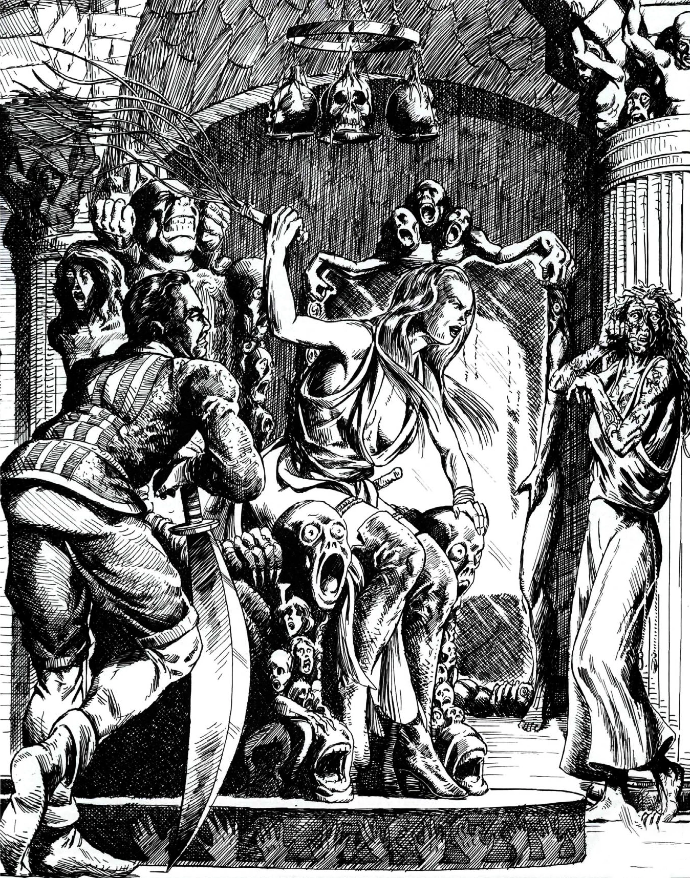 During warfare, priestesses of Loviatar scourged their naked shoulders or tore their cheeks with their nails to evoke magic.[20]