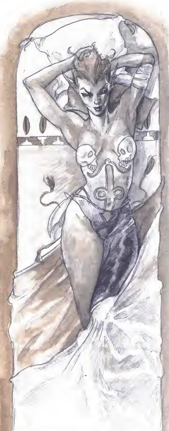 Lynkhab was technically an entity of pure will, who continually reformed herself as to be the embodiment of desire. Most recently, she preferred to take the form of a voluptuous elf with fire-colored hair and eyes like burning ice. However, she also could see what a creature found desirable and change to match.[4]