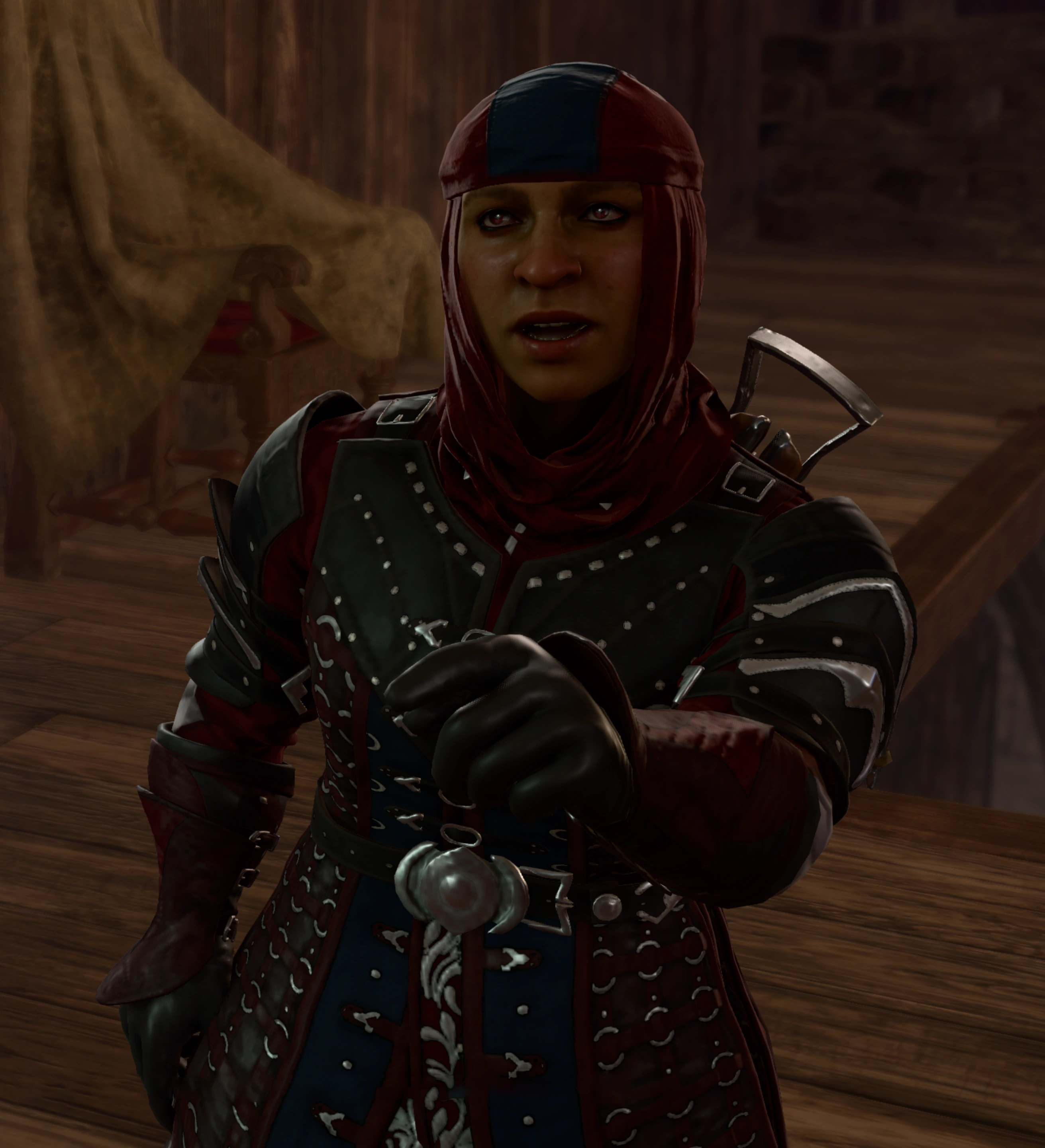 Merony was a gołd dwarven woman with an olive skin tone and a dark chestnut eyes. She kept her face clean-shaven and wore a cowl atop of her armor. Merony was armed with a light crossbow.[1]