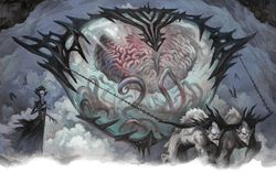 The influence of Ilsensine was important in the conflict between mind flayers of Oryndoll and the duergar. In the time when they had invaded the shield dwarf kingdom of Shanatar and captured many shield dwarves, the mind flayers had no gods. However, when the dwarves began to stage uprisings and rebellions, the city was plunged into chaos. The only reason it did not fall to the duergar rebellions was because of the sudden appearance of the mind flayer god Ilsensine. Since Ilsensine's appearance, the mind flayers became deeply religious and began to develop formidable psionic powers.[50] Ilsensine's favored proxy was Lugribossk.[51]