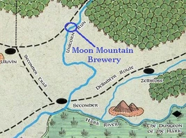 Moon Mountain Brewery was founded by Oblar Minstrelwish, a halfling adventurer that made a name for himself (at least among the hin of Secomber). During his travels, he met and fell in love with a half-elf sorceress named Mrune Moontan that, among her many attractive qualities, brewed the best ale that Oblar had ever tasted. It was her recipe and technique that produced Moon Mountain Ale, and it was named after her, in a way—those same hin of Secomber affectionately corrupted her name to "Moon Mountain".[1]