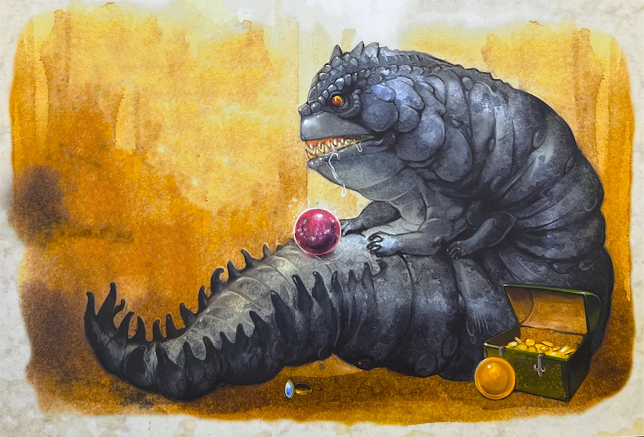 Ormyrr were wildly fascinated by magic even though they possessed no aptitude for the art. It did not stop them from trying to develop the magic of their own. They dreamt of being able to fly and wanted no other arcane ability more, be it via a spell, or wondrous item, growing wings, or breeding wings into their race. They have attempted mating with creatures like wyverns.[2] Ormyrr hoarded magic items and they attempted to take hold of wondrous items, scrolls, books, at every chance they got. Their obsession led them to lie, rob, and assault in search of magic.[1]