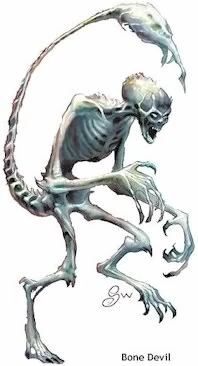 Osyluths (pronounced: /ˈoʊsilʌθs/ OSS-ee-luths[6]), sometimes called bone devils, were the taskmasters and interrogators of the baatezu devils, acting as law-enforcement throughout the Nine Hells. The very presence of the skeletal sleuths inspired dread due to their love of inflicting physical and mental suffering, on both mortals and devils alike.[7]