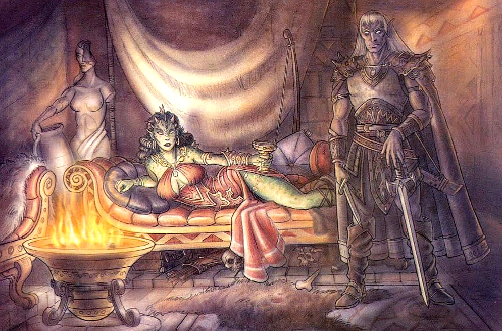 Keleidsa had a tiny viper familiar named Urlathan. She was romantically involved with a drow known as Trizeen. The dark sorceress had dealings with agents from the nation of Sembia and House Jaelre, which she preferred dealing with, compared to humans.[3]