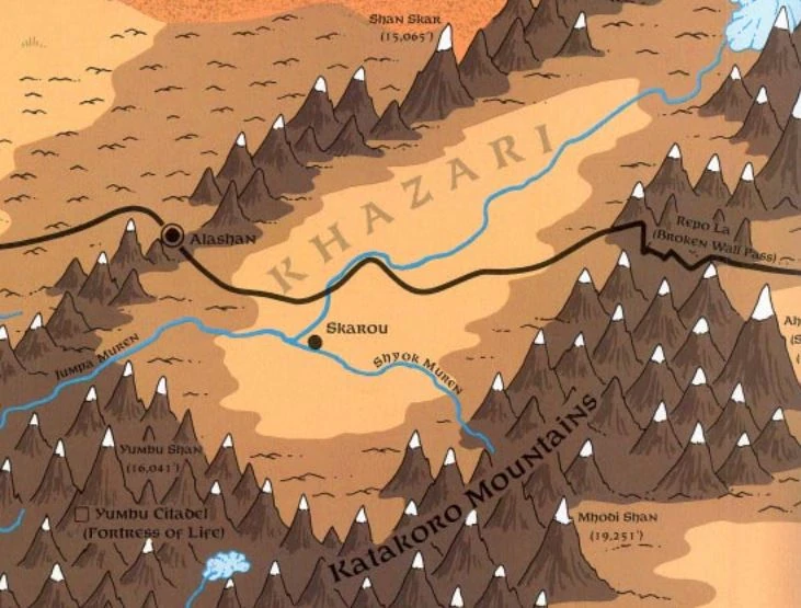 Inside the city was the Seven-Tiered Palace, from which the royalty of Khazari ruled, the Monastery of the Flowing Water, and the largest monastery of the Red Mountain sect. There was also a small monastery of the Yellow Mountain sect inside the city, resulting in some feuding between the two groups.[1]