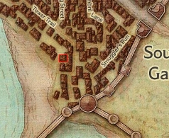 This smokehouse was located along Dock Street,[1] in the Dock Ward of Waterdeep.[4][2][3] It was located near the Fish Warehouse, which was also owned by the Fishmongers' Fellowship.[1][6]