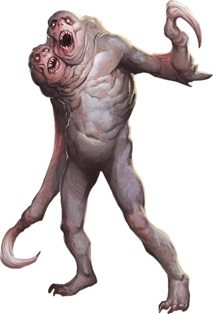 Angry sorrowsworn drew their sustenance from aggression and violence. They grew stronger as their targets fought back and harmed them, and became confused when they did not. Their two heads gave them good senses and made them hard to blind, charm, deafen, scare, stun, or knock unconscious.[1]