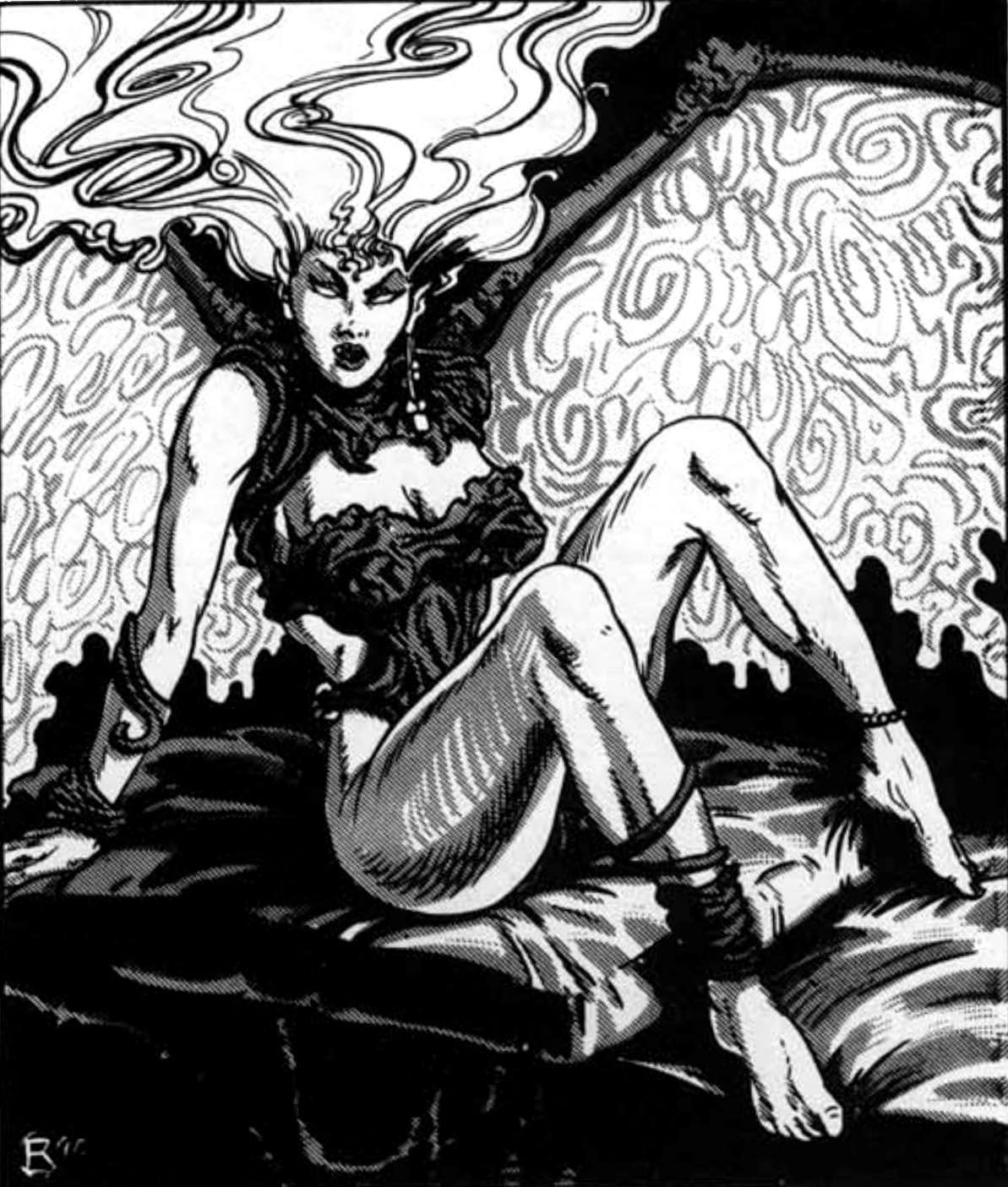 - ↑ Artwork often depicts succubi with horns and/or a tail, but these are not always mentioned in text, nor shown in all art. For regular shapeshifters, such features might be optional.