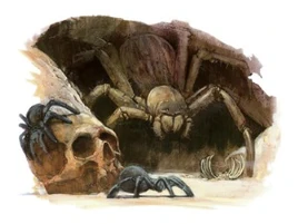 Sword spiders were native to the Mhair Jungles. They were introduced by drow traders into the Underdark, where they were kept and controlled by Lolth-worshiping drow as soldiers.[1] Drow worshipers of Selvetarm were also known to use them in battle and as guardians, and introduced them in great numbers into Dolblunde in the Northdark during the 1370s DR.[4]