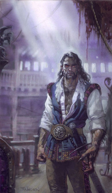 - ↑ 2.0 2.1 Philip Athans, Richard Lee Byers, Clayton Emery, Ed Greenwood, Dave Gross, Paul S. Kemp, Voronica Whitney-Robinson (July 2000). “Rogues Gallery: The Heroes of Stormweather”. In Dave Gross ed. Dragon #273 (Wizards of the Coast), p. 71.