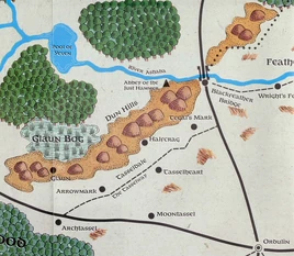 - Glaun: Built into the Dun Hills, this smoke-covered,[16] iron-working town smelted the ore gathered from the nearby Glaun Bog.[15] In the past they were assaulted by perytons and wyverns, and the fringes of their cottages were sporadically harassed by trolls and goblinoids.[16]