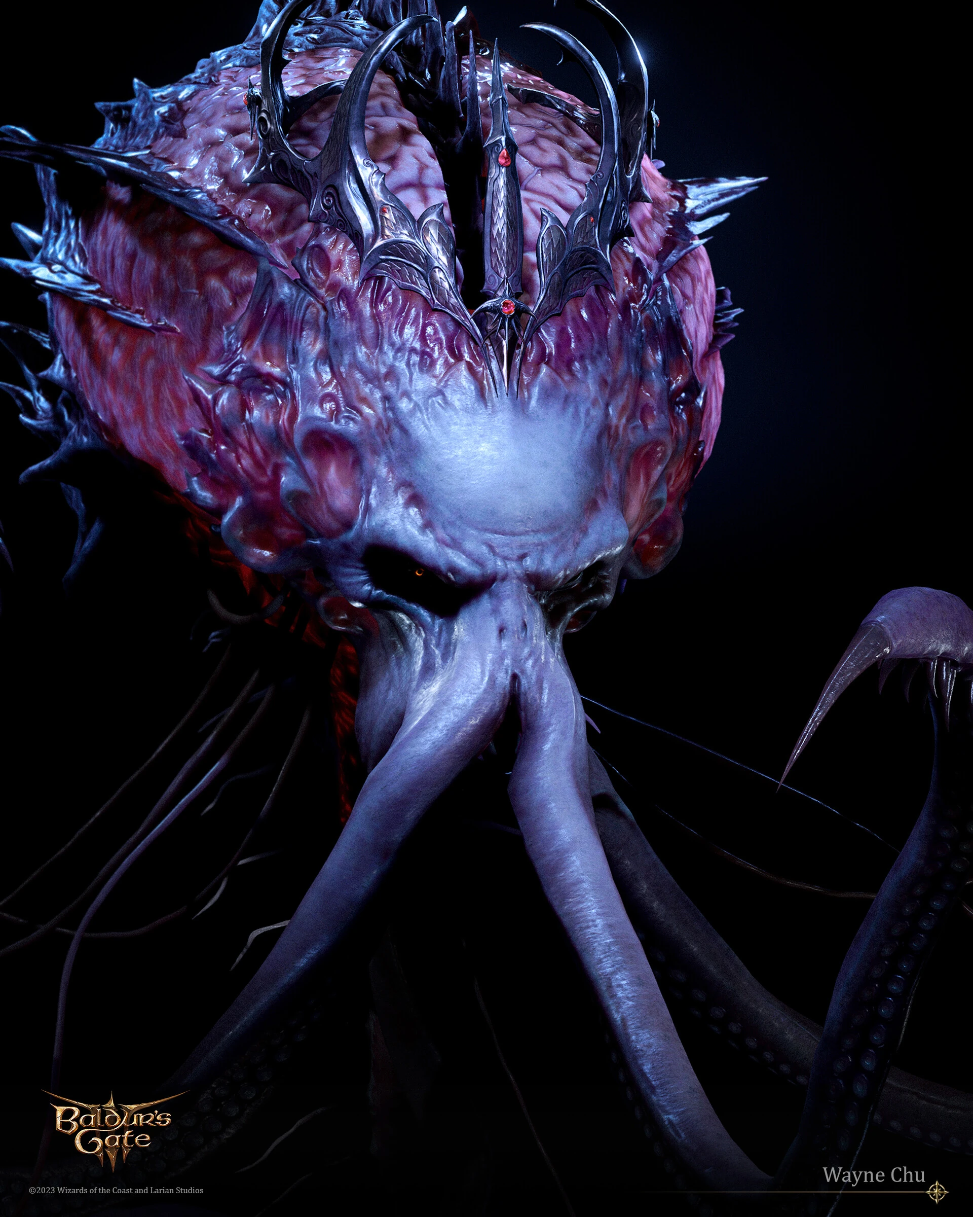 Later on, it was revealed that the Absolute was not in fact a deity, but rather an empowered elder brain, which had been enslaved by the Chosen of the Dead Three. These Chosen were Ketheric Thorm of Myrkul, Enver Gortash of Bane, and the Dark Urge of Bhaal, though the Dark Urge was later usurped by Orin the Red. The empowered elder brain was brought under their command through the use of the Crown of Karsus, an artifact of untold power created by Karsus. The Chosen used three unique Netherstones to communicate with the Crown and dominate the elder brain. The elder brain had the typical appearance of one of its kind, but was gargantuan in size by comparison.[1]