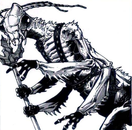 Thri-kreen had no clear or definable personalities as humans would know them. No emotions could be discerned from their insectoid faces or their patterns of behavior, though rapid twitching of their antennae or mandibles indicated agitation.[4] Acting spontaneously, they were unpredictable and always of chaotic alignment, showing no inclination toward good or evil. These traits made them utterly alien and inscrutable to other races, and folk unfamiliar with them regarded them as savage and brutal monsters.[4][5]