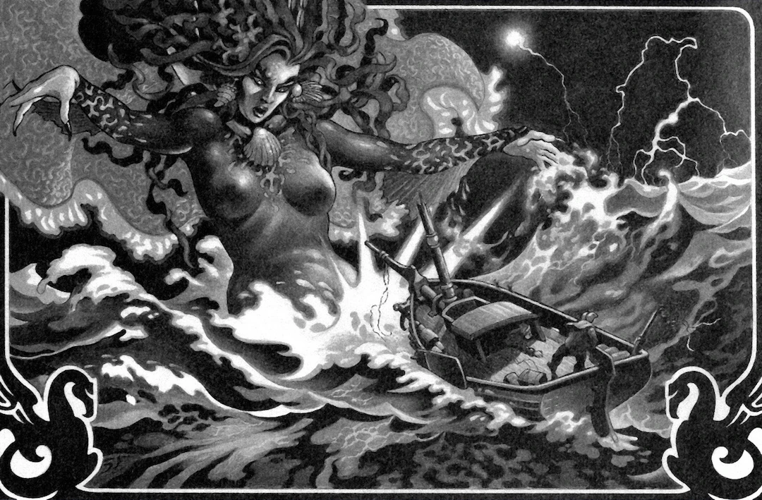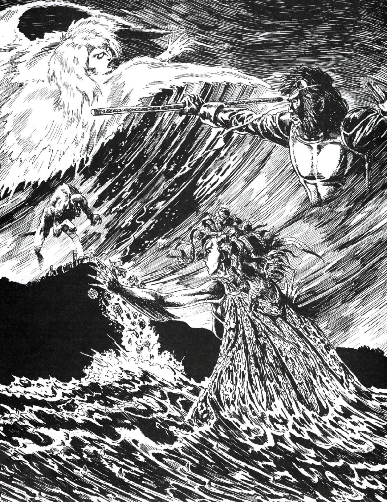 Umberlee rising from the sea to meet with her fellow Gods of Fury.