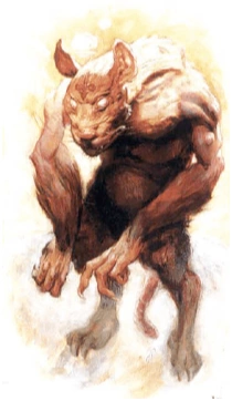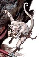 Rat-fiends possessed rudimentary intelligence, capable of dictating and following simple commands, as well as recognizing when a strategy had become non-viable.[3] They were craven tanar'ri that fled if they felt truly threatened. Their complete gutlessness was contrasted by their love of praise, and they would do nearly anything to serve their master's will.[1] Due to the regular abuse they suffered within the Abyss, uridezu preferred to travel to other locations, such as the Material Plane.[3]