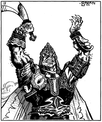 These genies were capable fighters but leadership was their strongest asset. Troops under their command were inspired by honor or fear, but fought with heightened passion nonetheless. Warmongers preferred to fight from horseback where they could use their incredible strength to swing weapons.[1]