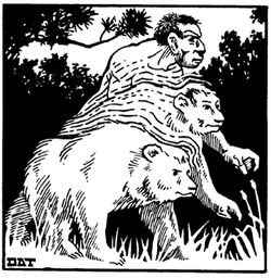 They saw themselves as the guardians standing between the natural world and civilization.[2] In order to prevent themselves from harming others they controlled their savagery and isolated themselves.[2] When in bear form they were irritable and moody, actively seeking out evil entities to slay.[3] They were particularly hateful of evil lycanthropes,[4] although a small few were just as evil as them.[2]