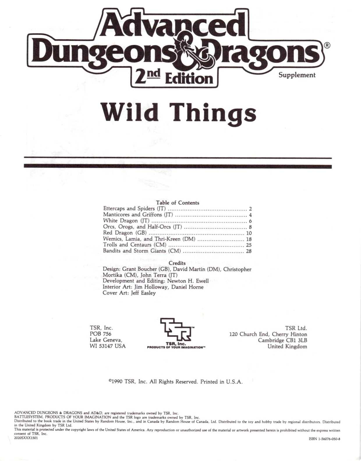 Wild Things was a booklet that was bundled with the Wilderness Survival Guide as the "Limited Edition" of that sourcebook, mainly as a way to get rid of unsold stock.