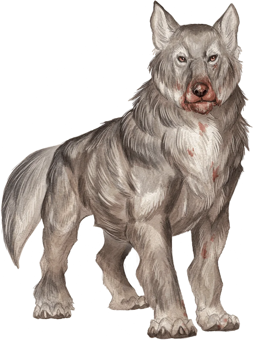 Wolves were canine pack hunters that were excellent trackers by scent. They were shrewd hunters and worked as a team, surrounding and tripping their prey.[3] They were very common as companions for rangers and druids.[6]